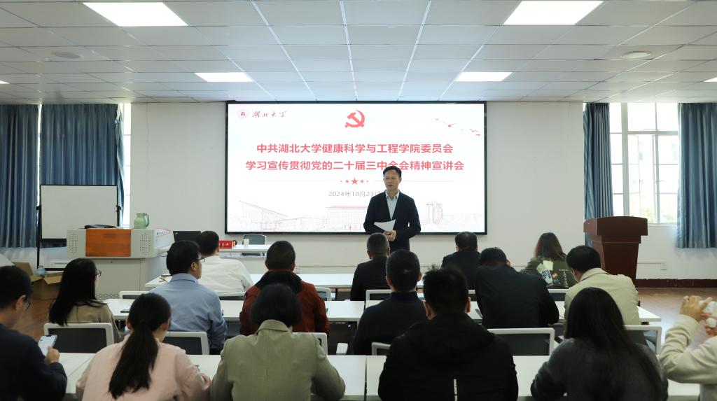 10月23日下午,公司党委常委、副董事长刘志洪为beat365英国官网网站师生宣讲党的二十届三中全会精神。公司全体教职工及员工党员代表参加宣讲会。公司党委书记林二友主持会议。