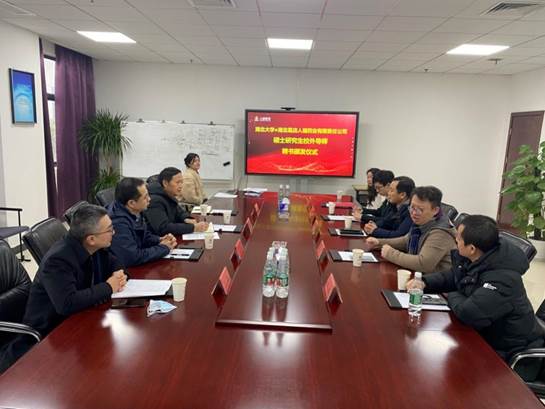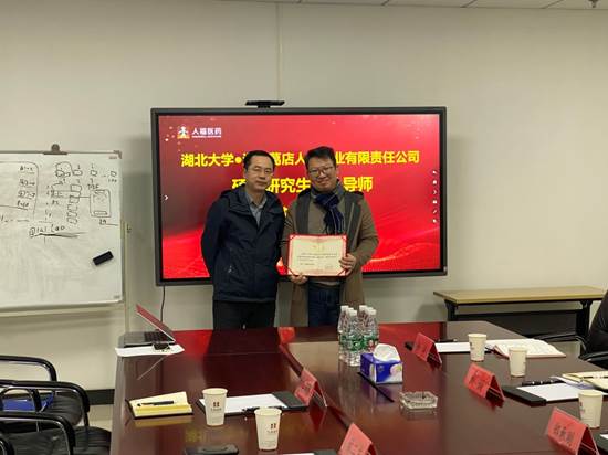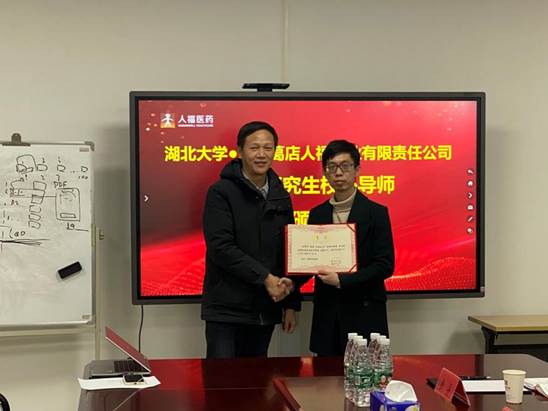 2023年2月23日上午,beat365英国官网网站刘志洪经理带队赴武汉九珑人福药业有限责任公司进行专业硕士研究生校外兼职导师聘任,湖北葛店人福药业有限责任公司总经理郑承刚、总工程师汪洋博士、研发总监刘诚博士、研发副总工刘林博士、人力资源总监余洋出席。