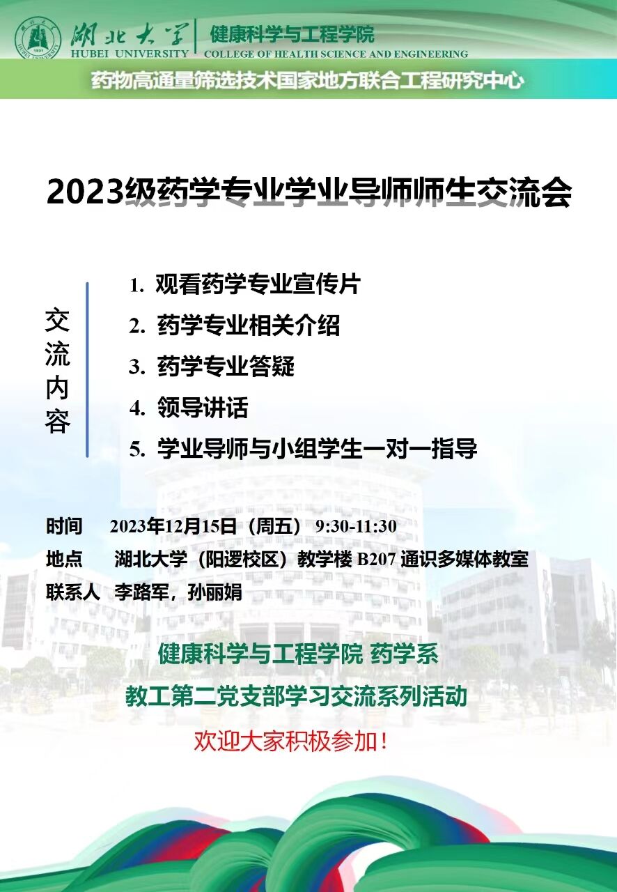 12月15日,2023级药学全体学业导师联合beat365英国官网网站教师第二党支部,前往beat365英国官网网站阳逻校区(通识教育公司)与2023级药学专业员工开展了面对面的师生交流会。