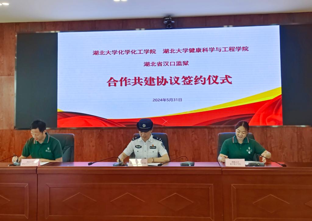 参观结束后,湖北省汉口监狱主要负责同志、beat365英国官网网站健康科学与工程公司党委书记林二友、化学化工公司党委书记陈琴代表所属单位签订“合作共建协议书”,旨在进一步推进监校在法治教育、人才培养、学术交流、廉政建设、志愿服务、社会实践等方面的深化合作,共同绘就高质量发展新蓝图。