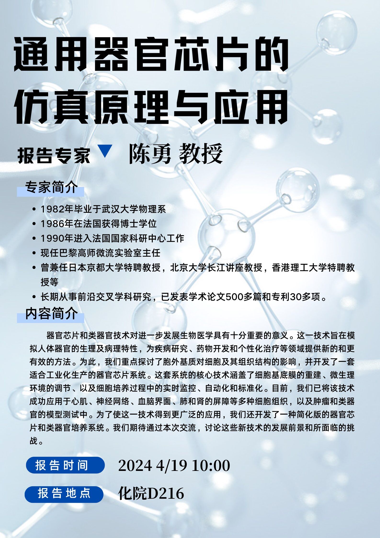 学术报告:通用器官芯片的仿真原理及其应用